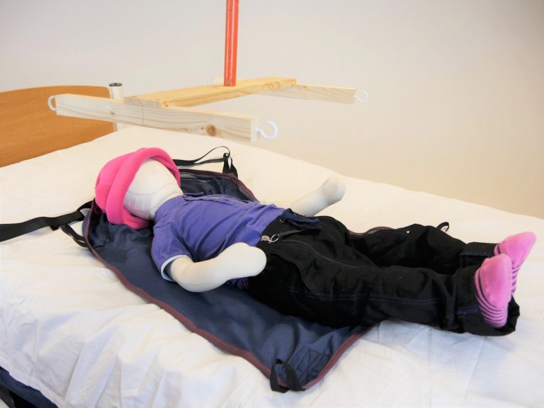 After manufacturing the prototype sling and model hoist, a suitably sized doll was used for practical testing. Results and images were sent to Margaret for review by the multidisciplinary medical team.